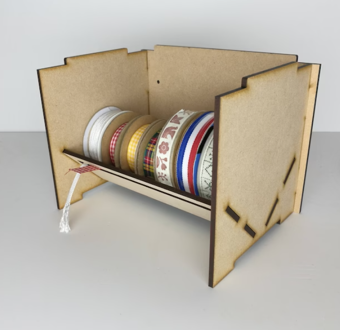 - Flat pack display storage for ribbons, rolls, tape, thread etc.